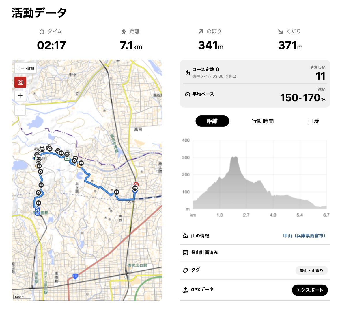 神呪寺〜展望台〜甲山山頂〜森林公園〜展望台〜と