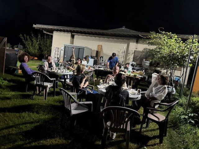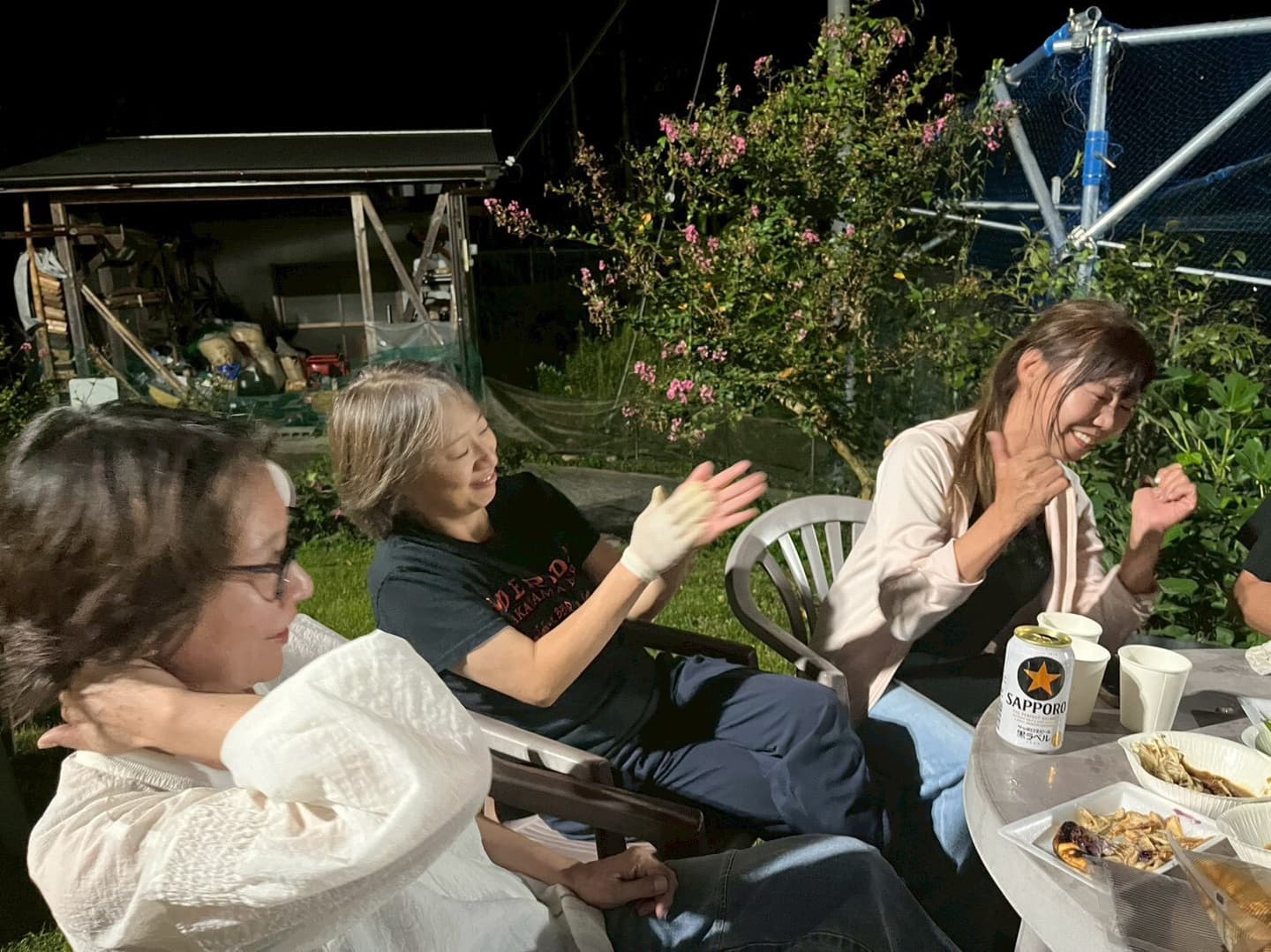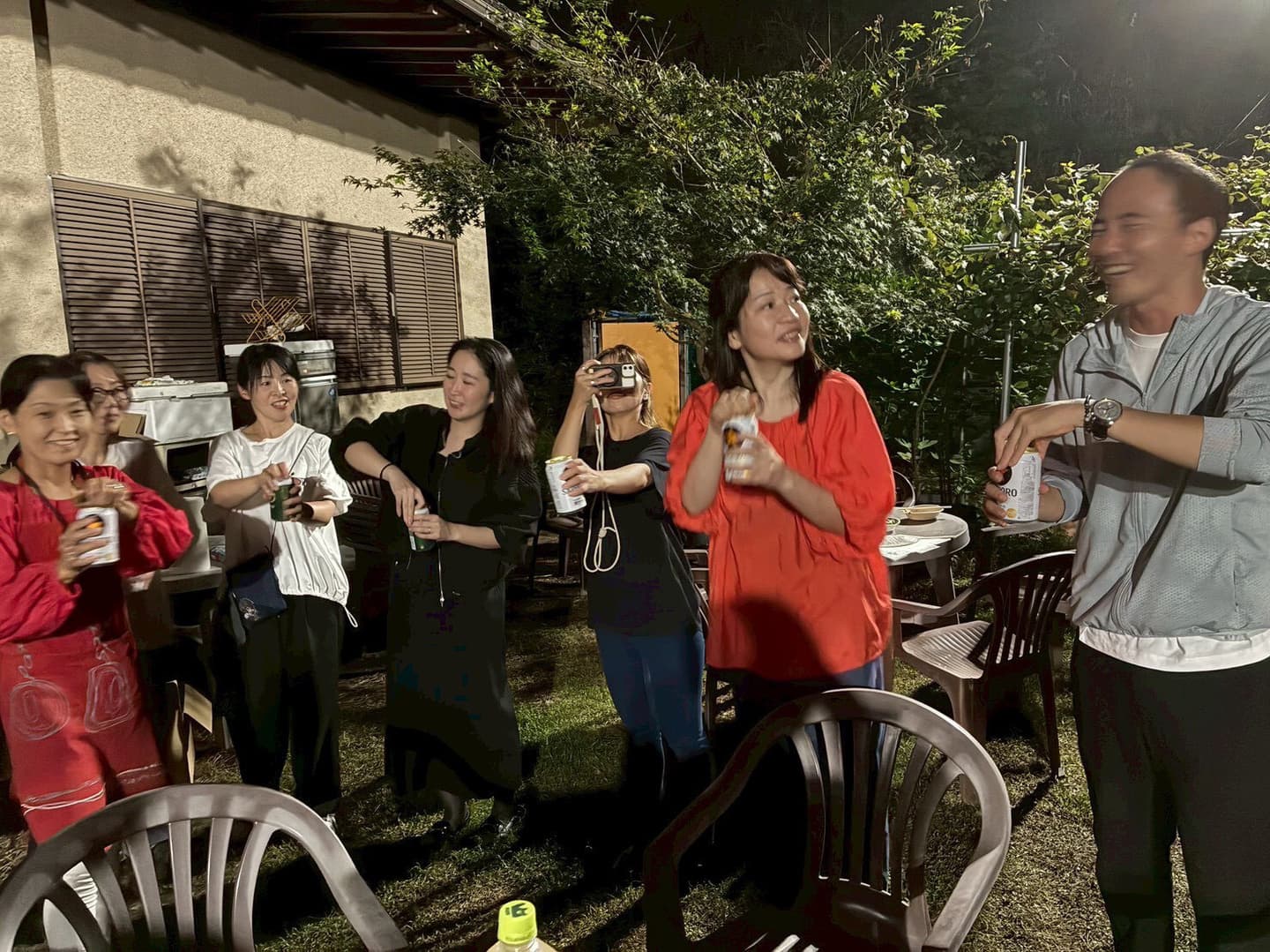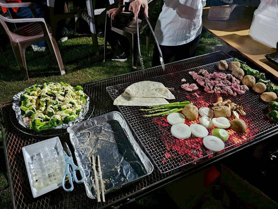 プレライブの後は、お楽しみ前夜祭BBQ!自然に囲まれた紀美野町「MOERADO」のお庭で、笑い声と煙が立ち上る最高の時間。テンションMAXのテーブル、アットホームな雰囲気の中、チームの結束もバッチリ!この勢いでライブ成功まちがいなし!