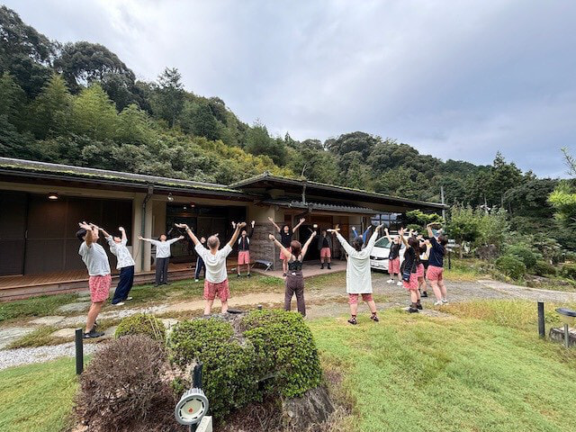 当日の朝は全員が庭に集合!ラジオ体操から始まります。