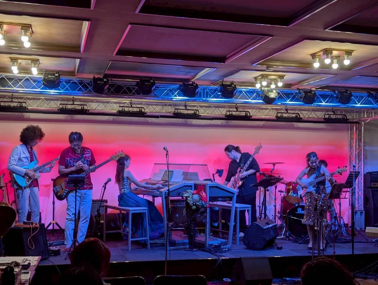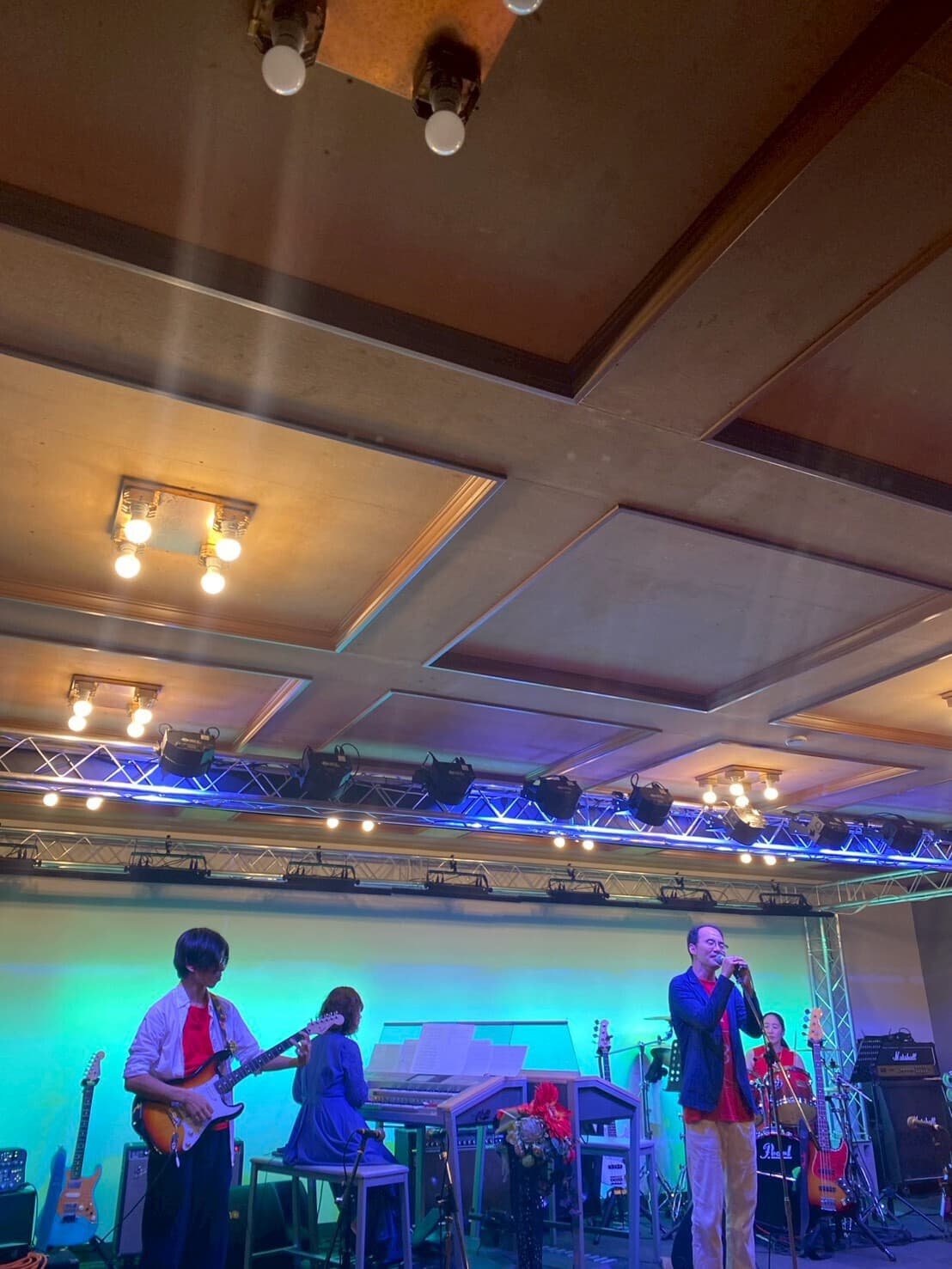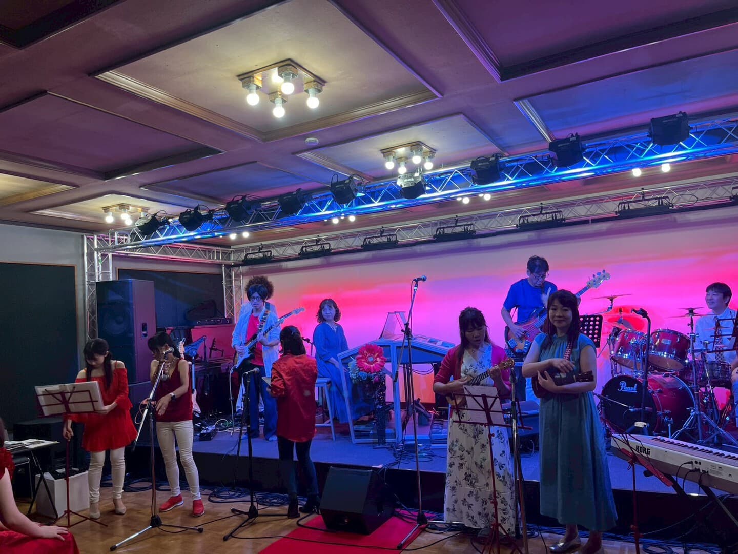 エレクトーンを組み立て、ステージの設営、サウンドチェック。