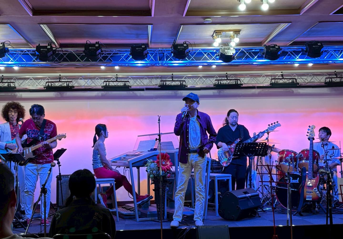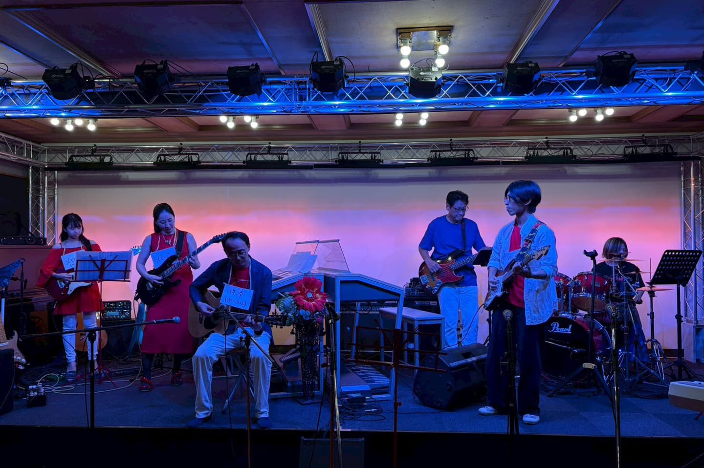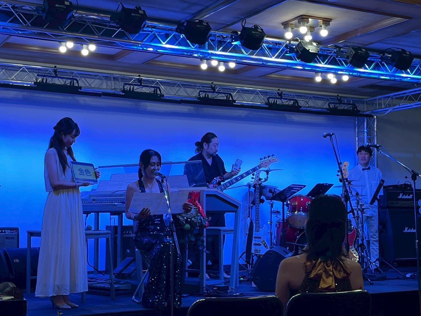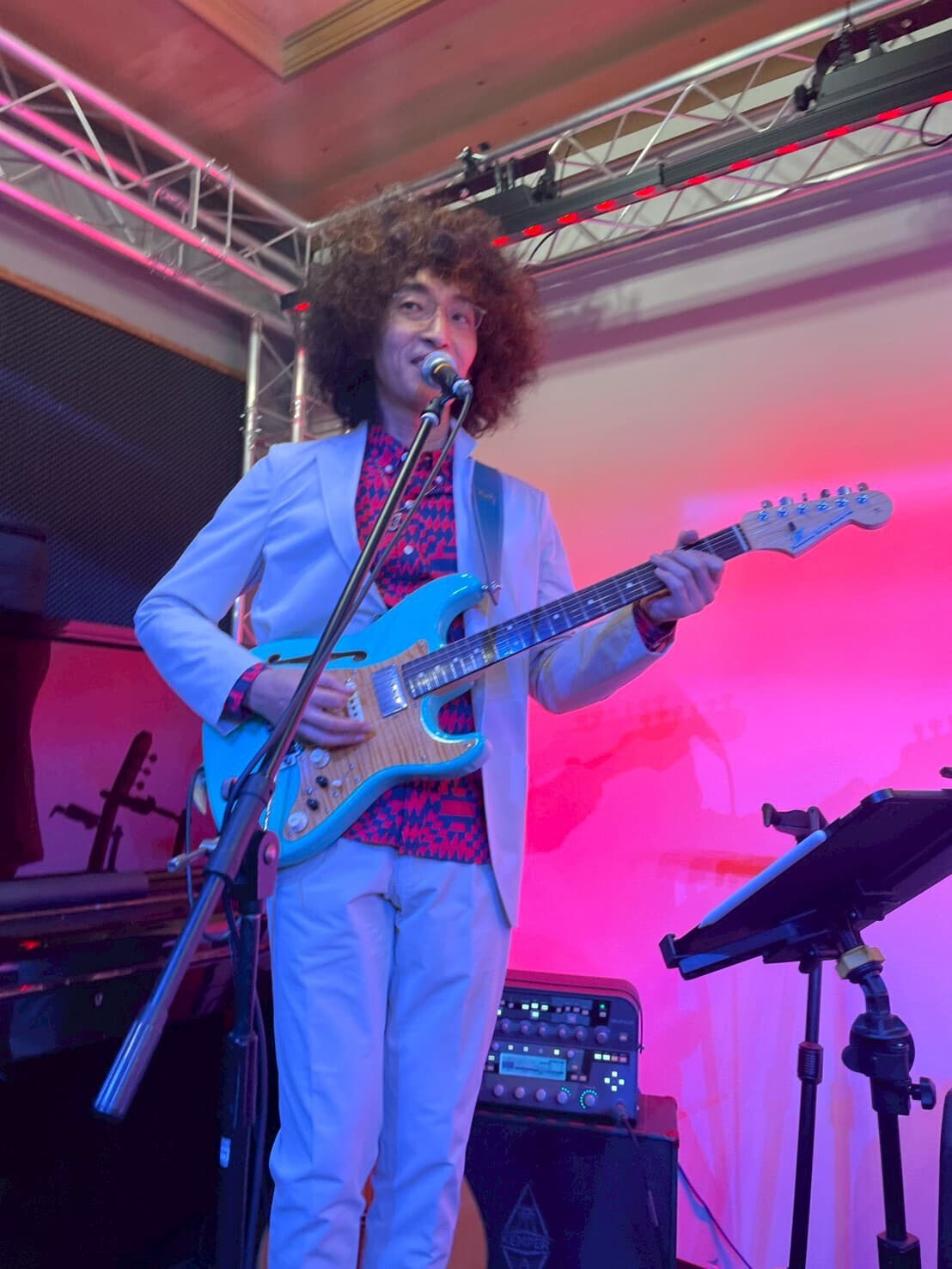 エレクトーンを組み立て、ステージの設営、サウンドチェック。