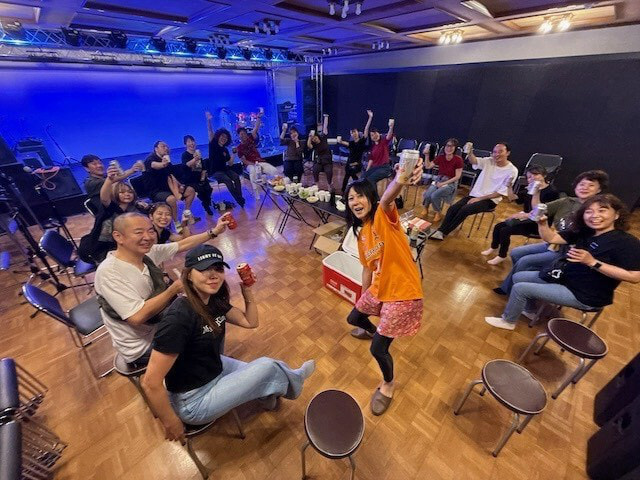 空っぽになったステージで、「ありがとう」「お疲れ様」の乾杯!!
