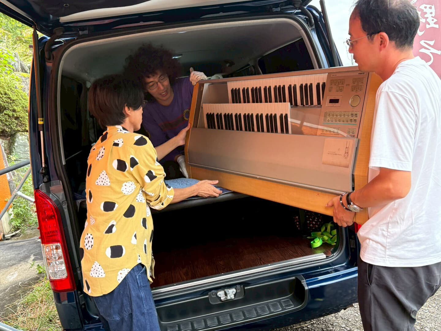まずは野田に集合!2階レッスン室にあるエレクトーンを解体し、1階に運び出し。ギターやベース、その他荷物も、、幾島先生のハイエース号に詰め込みます。