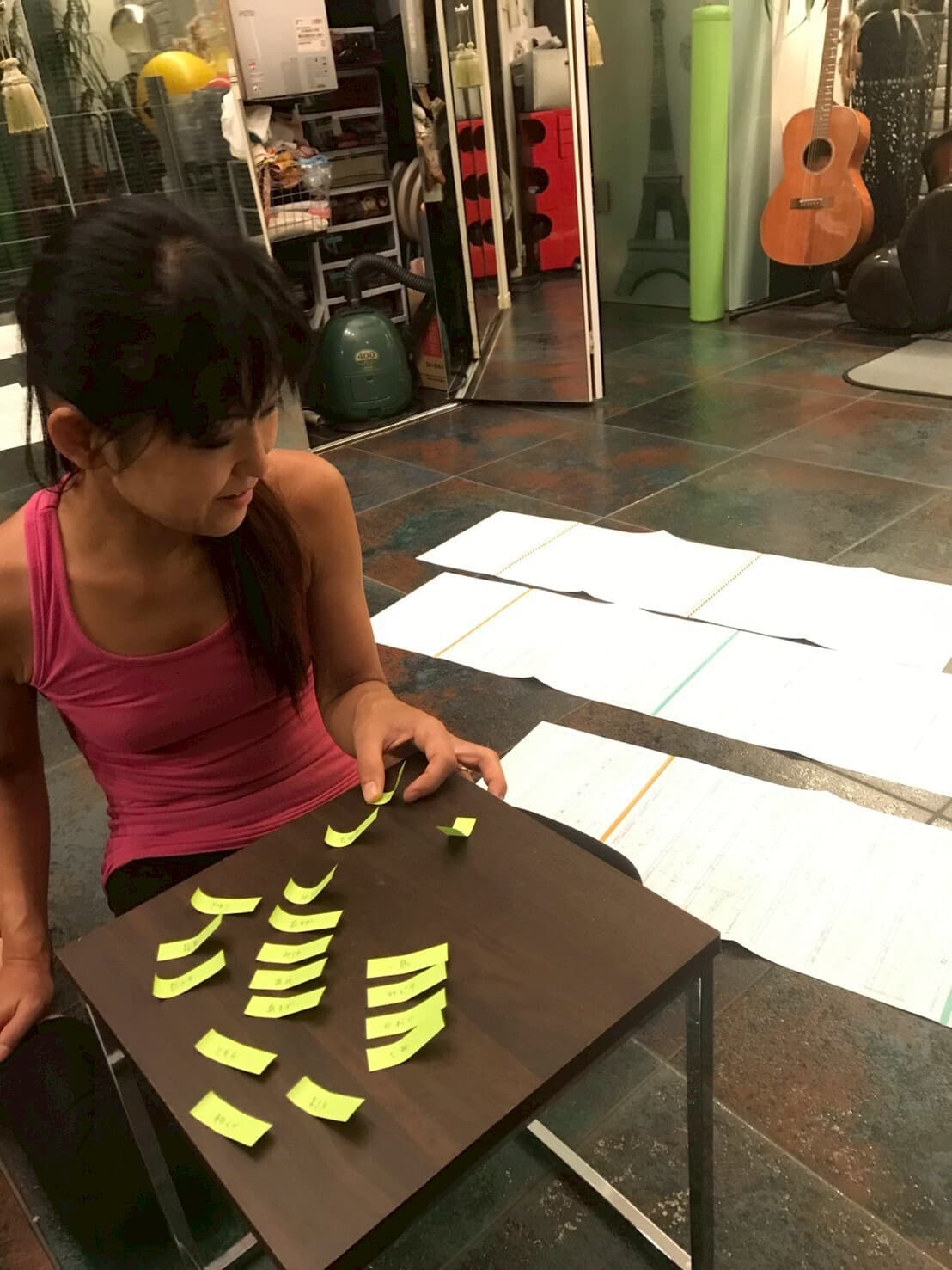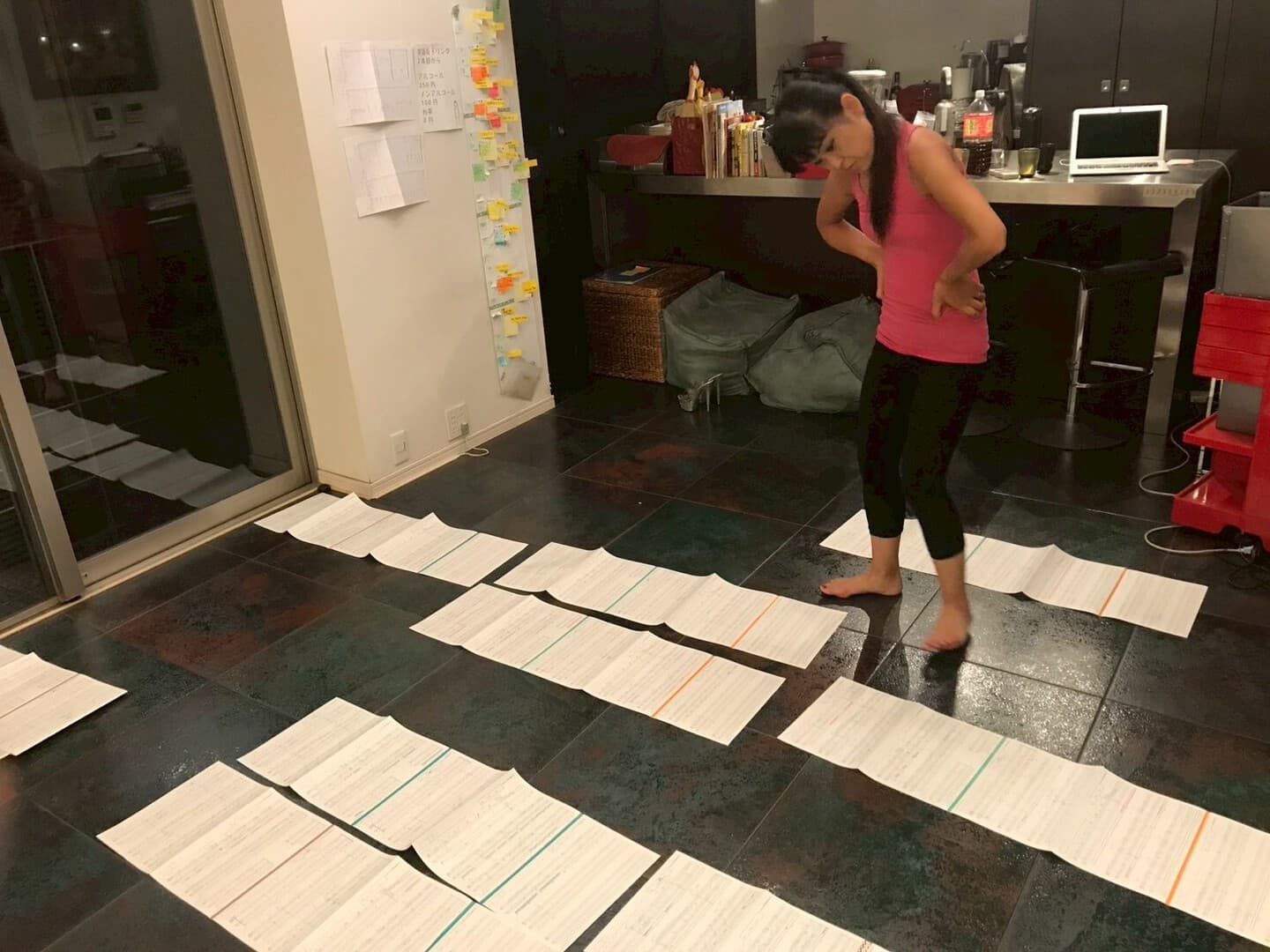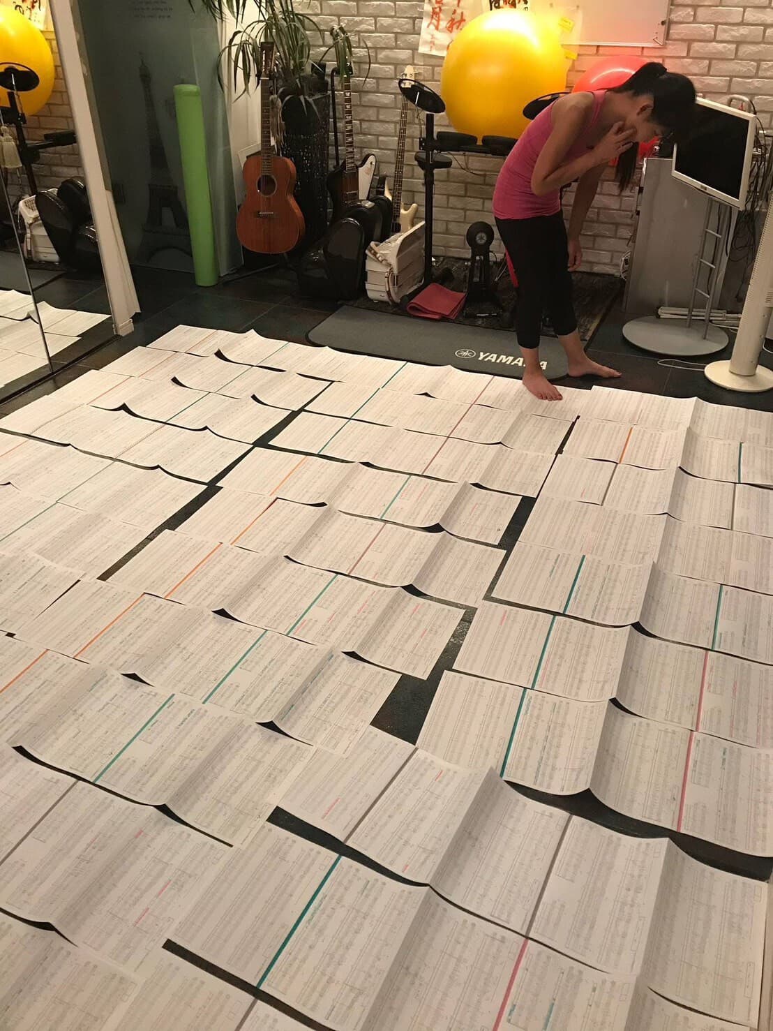 1つの楽器で一音しか鳴らすことができないためパート分けはまさに至難の業!全音の楽譜を広げて作業を行います。
