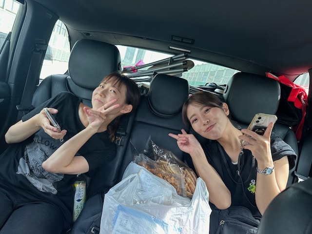 車内では、到着してからの流れや、MCの内容を確認し、メンバーのグループLINEで情報交換。