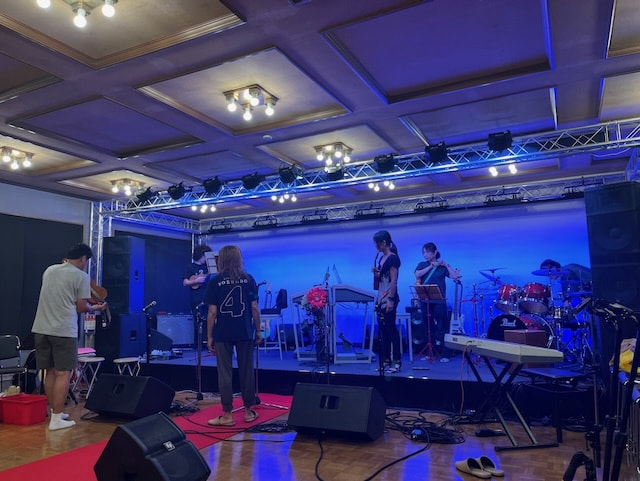 エレクトーンを組み立て、ステージの設営、サウンドチェック。