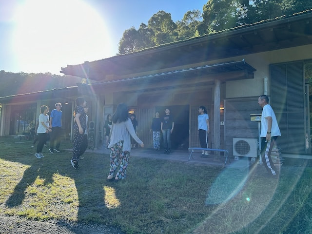 当日の朝は全員が庭に集合!ラジオ体操から始まります。