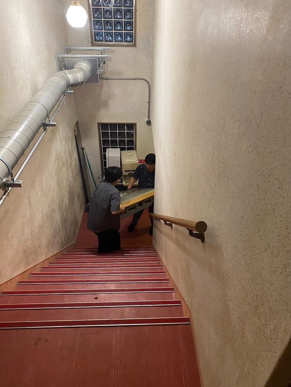 華やかなステージから一転。一呼吸おいたら、またまたエレクトーンの解体。バケツリレーのように、荷物や楽器を運び出します。